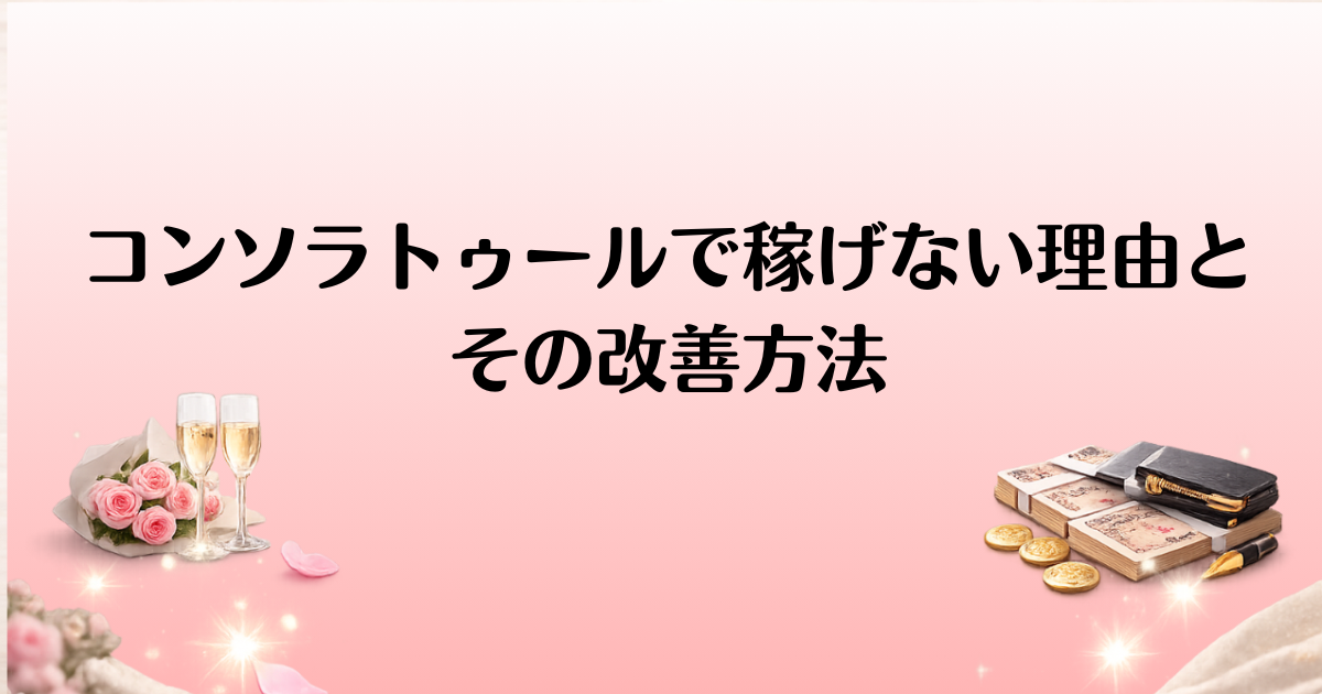 「コンソラトゥール(Consolateur)で稼げない」と感じている方は少なくありません。多くの出会い系やマッチングサービスと同様に、収益化のためにはいくつかの戦略と努力が必要です。しかし、思ったように稼げない理由や、その改善策について理解できていないと、なかなか成果に繋がらないこともあります。この記事では、コンソラトゥールを利用して「稼げない」と感じる原因を解説し、実際に収益化を実現するための改善方法や成功事例をご紹介します。具体的なアクションプランを提供するので、もし「稼げない」と感じている方は、ぜひ参考にしてみてください。