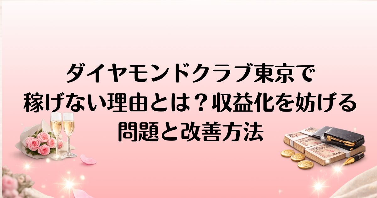 ダイヤモンドクラブ東京を利用しているものの、なかなか思うように稼げないと感じている方へ。このページでは、なぜ「ダイヤモンドクラブ東京 稼げない」と言われるのか、その理由と実際の問題点を解説し、収益化を成功させるための具体的な方法をご紹介します。