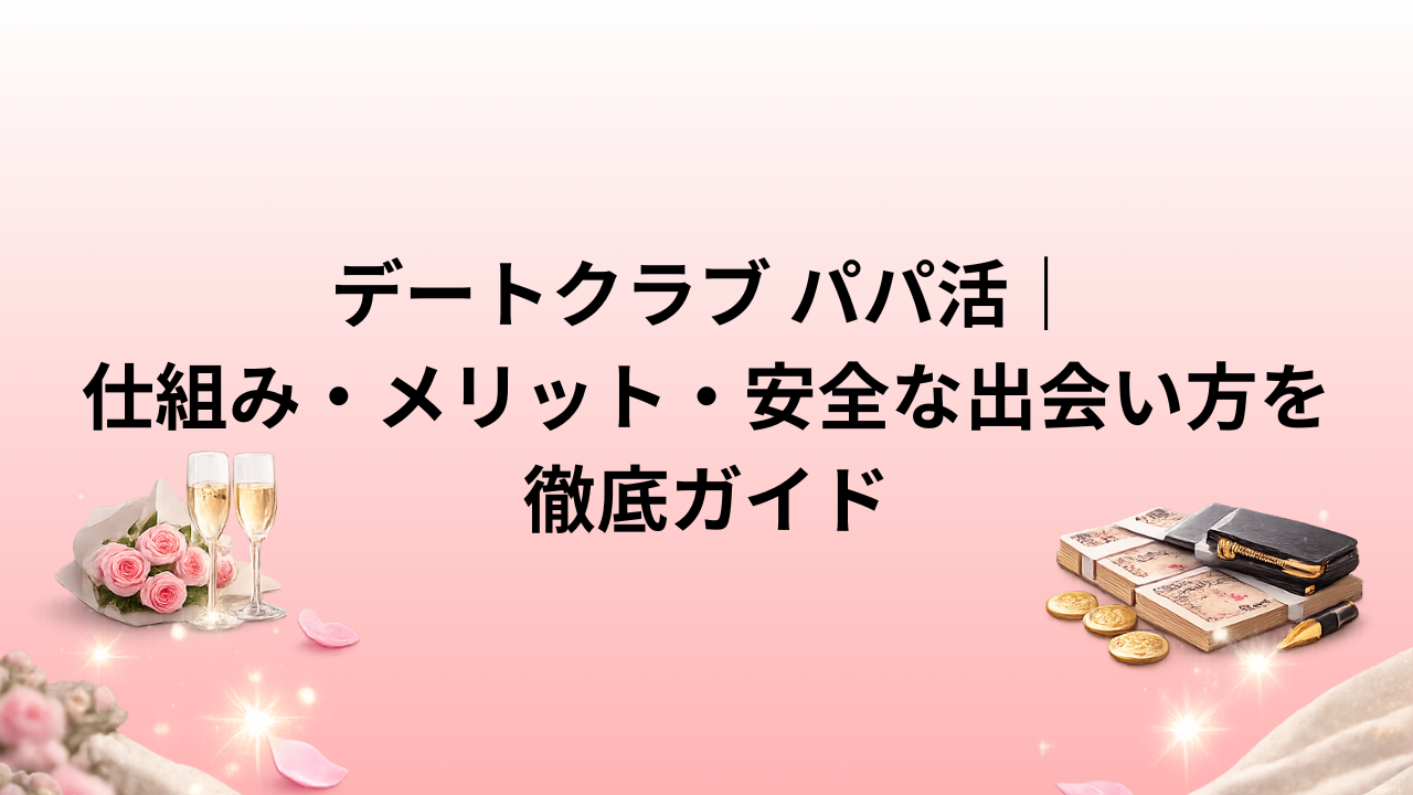 この記事では、デートクラブ パパ活の仕組みから、そのメリット・デメリット、そして安全に利用するためのポイントまでを徹底的に解説します。デートクラブとパパ活アプリの違いや、初心者でも安心して活動を進める方法など、実際に利用を考えている方にとって役立つ情報をお届けします。安全で質の高い出会いを探しているあなたに最適な方法を見つけましょう。