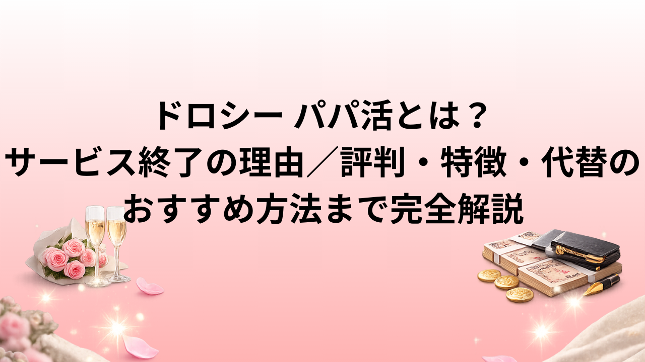 本記事では、ドロシーがどんなサービスだったのか、なぜ終了したのか、そして今後パパ活を続けるための安全で信頼できる選択肢をご紹介します。パパ活を始めたばかりの方や、これから始めようと考えている方にとっても有益な情報をお届けしますので、ぜひ最後までご覧ください。