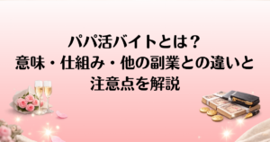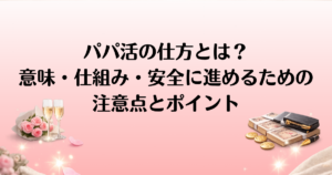 「パパ活 なにする?」と疑問に思う方も多いのではないでしょうか。パパ活は、年上の男性と食事やデートを重ね、その対価として金銭的な支援を受ける活動です。ですが、実際にパパ活を始めるにあたって、具体的に「なにをするのか?」という点が不安な方もいるかもしれません。本記事では、パパ活の実際の流れを、場選びからデート内容まで具体例を挙げて解説します。これからパパ活を始めようとしている方や、興味がある方にとって、実践的な情報をお届けしますので、ぜひ参考にしてみてください。