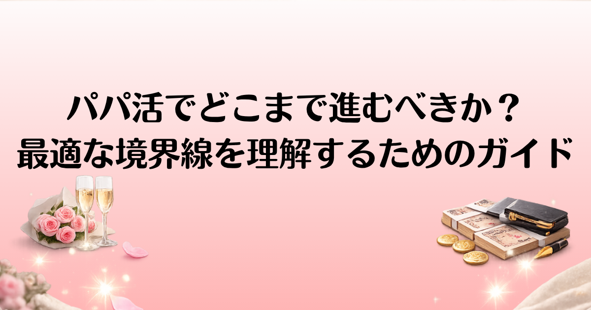 パパ活を始めるにあたり、最も重要なのは「どこまで進むべきか?」という境界線をしっかりと理解することです。特に、相手との関係が進展する中で、過度に距離を縮めすぎないよう注意が必要です。パパ活は経済的支援を主な目的としている場合もあれば、交流や社会的つながりを重視する場合もあります。この記事では、パパ活における理想的な関係の進展方法や、どこまで進むべきかの基準を紹介し、安全で健全な関係を築くためのポイントをお伝えします。
