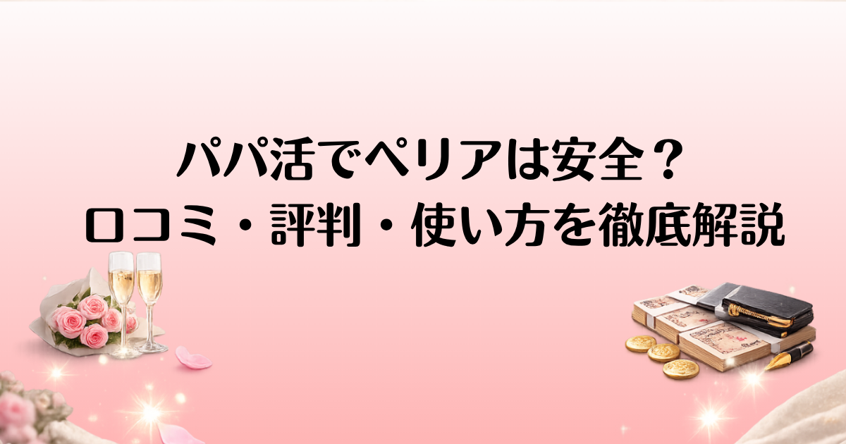 「パパ活のペリアって安全なの?本当に出会えるの?」と気になっていませんか?最近注目されているパパ活アプリのひとつですが、口コミや評判を見て不安を感じる方もいるかもしれません。使う前に、特徴や注意点をしっかり知っておくことが大切だと言われています。この記事では、ペリアの基本情報から安全性、口コミ、料金、使い方まで、初心者にも分かりやすく解説していきます。