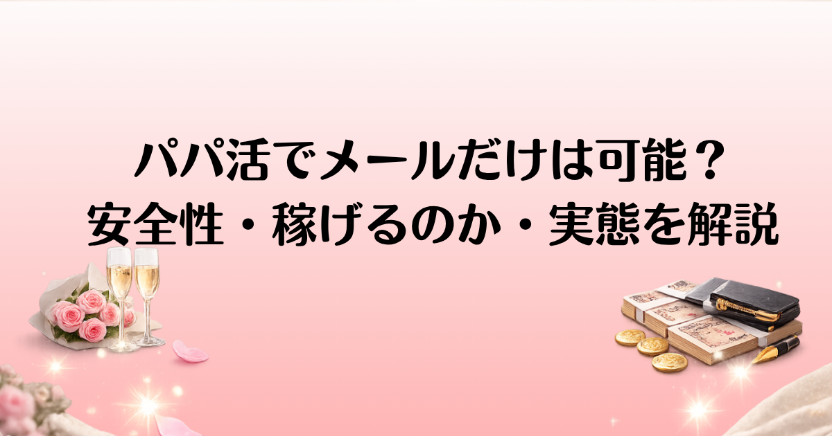 パパ活と言えば、一般的には実際に会ってデートを重ねるイメージが強いですが、最近では「メールだけでパパ活をしたい」という人も増えてきました。では、実際に「パパ活 メールだけ」で稼ぐことは可能なのでしょうか?この記事では、メールだけでパパ活をする場合の仕組み、メリット・デメリット、そして実際に稼げるのかどうかを徹底的に解説していきます。また、メールでのやり取りで注意すべきポイントや、トラブルを回避するためのコツについても触れますので、これからパパ活を始める方や、メールのみでの活動を考えている方には必見の内容です。