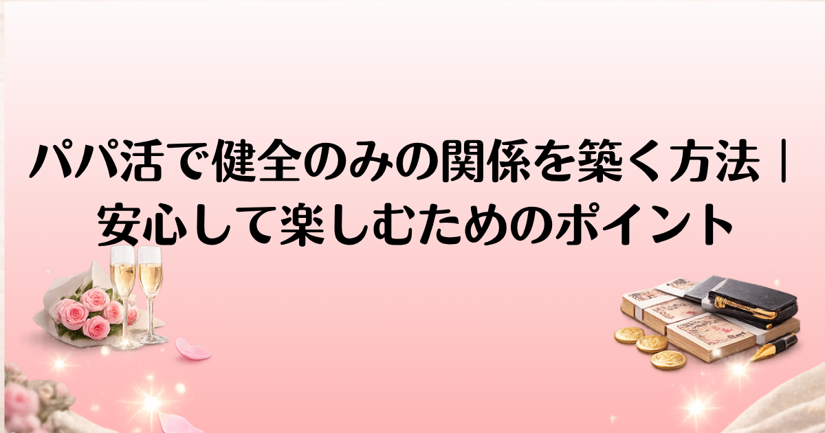 パパ活を始めたいけど、健全な関係を築きたいと思っているあなたへ。パパ活には金銭のやり取りが関わるため、健全で安全な関係を築くことが最も重要です。しかし、健全なパパ活を実現するためには、いくつかの注意点や心構えが必要です。この記事では、健全なパパ活を行うための基本的な考え方や、実践するための注意点を詳しく解説します。安心してパパ活を楽しむために、リスクを避けるための具体的な方法も紹介しますので、ぜひ参考にしてみてください。