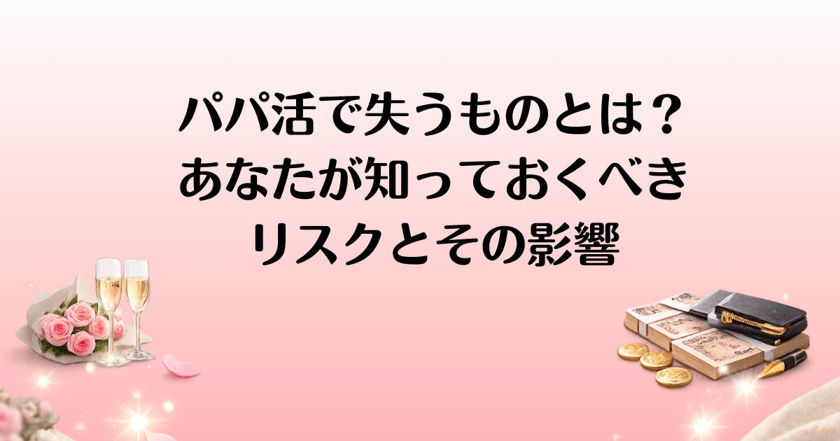 この記事では、パパ活を行う中で後悔する前に知っておくべき「失うもの」を詳しく解説し、リスクを最小限に抑えるための方法を紹介します。自分にとって本当に価値のあることを守るために、パパ活をどのように進めていけばよいのかを一緒に考えていきましょう。