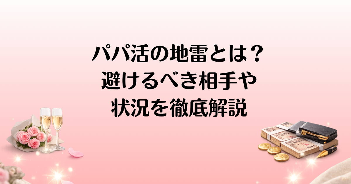 パパ活を始める際、最も重要なのは「相手選び」です。しかし、どんな相手でも良いわけではなく、中には避けるべき相手、「地雷」的な存在もいます。では、パパ活で遭遇する「地雷相手」にはどんな特徴があるのでしょうか?この記事では、地雷相手を避けるための方法や、万が一地雷に当たってしまった場合の対処法を徹底解説します。安全で長期的なパートナーシップを築くために、今から知っておきたいポイントを押さえておきましょう。