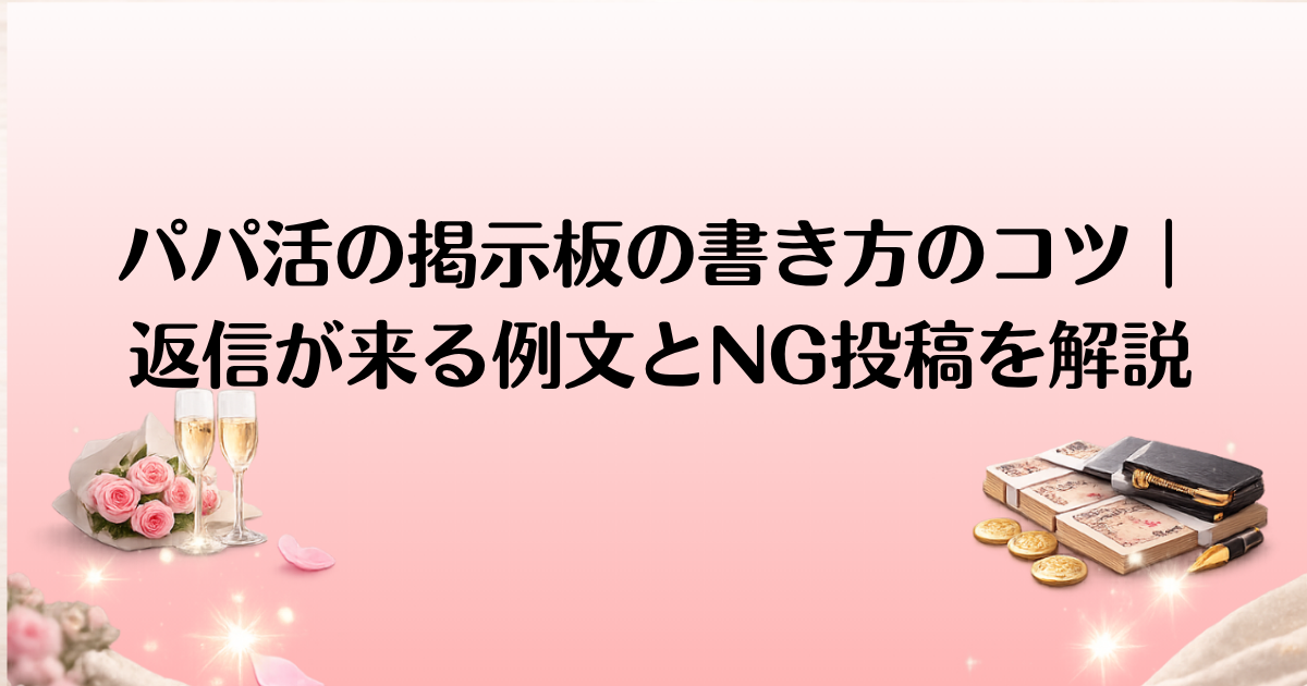 この記事では、パパ活掲示板の書き方の基本から、返信が来やすいコツ、実際に使える例文、そしてやってはいけないNGパターンまでをわかりやすくまとめました。