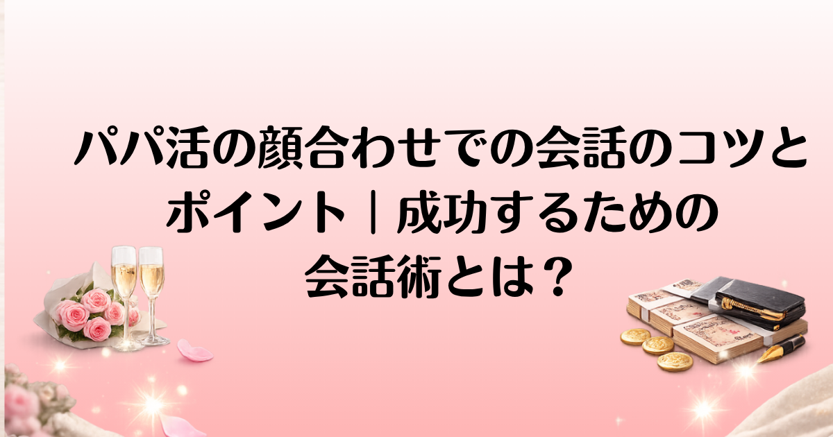 パパ活における顔合わせは、初対面で相手と良い関係を築くための大切なステップです。最初の印象がその後のやり取りに大きく影響を与えるため、会話が鍵となります。顔合わせでは、相手と自然に会話を楽しむことができるかどうかが、その後の関係に繋がります。では、パパ活の顔合わせで成功するために、どのように会話を進め、相手との信頼関係を築くべきなのでしょうか?この記事では、顔合わせの目的や会話の進め方、そしてパパ活で成功するための会話術について詳しく解説します。