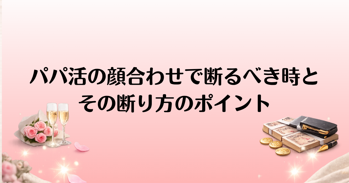 パパ活における顔合わせは、新たな関係のスタートとなる重要な機会です。しかし、全ての顔合わせが必ずしも合うわけではありません。相手との条件やフィーリングが合わないと感じた場合、無理に続けるよりも、早い段階で断ることが大切です。ただし、顔合わせを断るタイミングや方法には、慎重さが求められます。ここでは、パパ活の顔合わせで断るべきシチュエーションや、相手に不快感を与えずに断るためのテクニックを紹介します。