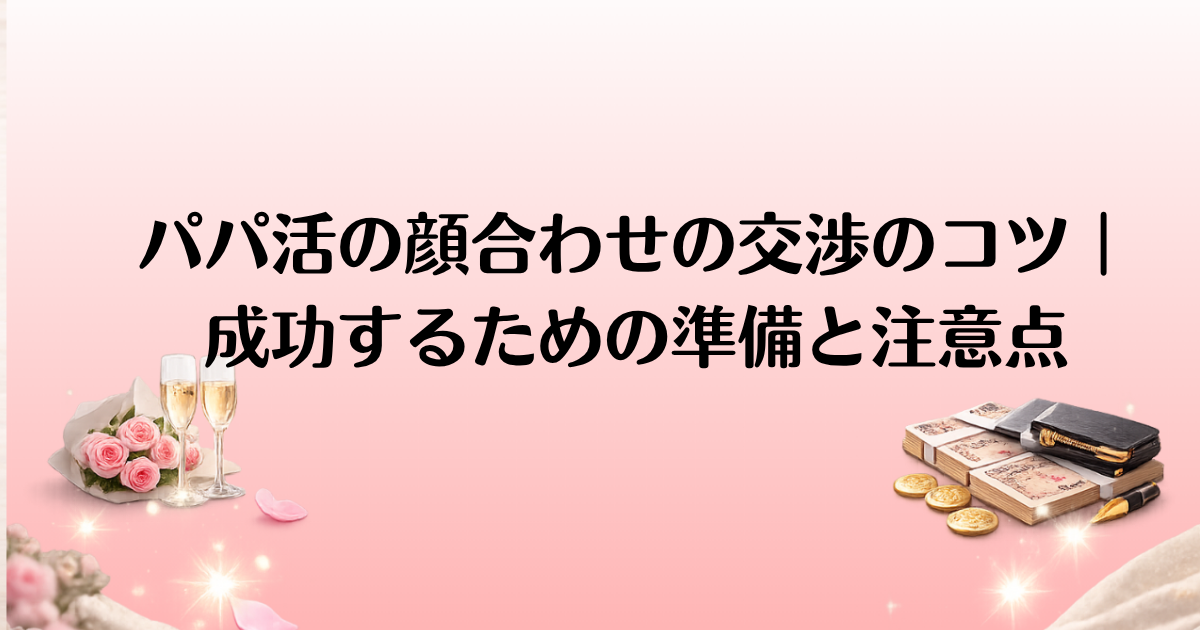 パパ活を始めるにあたって、顔合わせは非常に重要なステップです。この時、相手との信頼関係を築くために、交渉のスキルが求められます。しかし、初対面での交渉には注意が必要で、慎重に進めないと後々の関係に影響を与えてしまう可能性もあります。この記事では、顔合わせで成功するための交渉術や、交渉の際に意識すべきポイントをご紹介します。顔合わせを円滑に進め、良いスタートを切るための方法を学んでいきましょう。