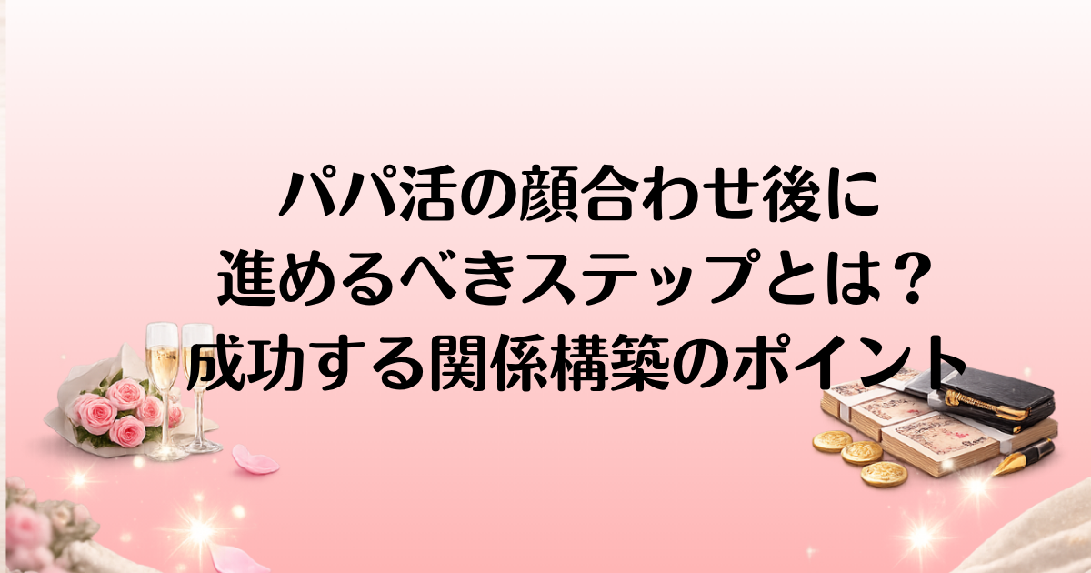 パパ活の顔合わせ後に次に進むためのステップを理解しておくことは、成功した関係を築くために非常に重要です。初対面での顔合わせは、相手との信頼関係を深める第一歩ですが、その後の進め方次第で関係の長さや質が大きく変わります。この記事では、顔合わせ後に実践すべきフォローアップ方法や、次のステップに進むための会話術、さらに注意すべきポイントをご紹介します。初めて顔合わせを経験する方や、より良い関係を築きたいと考えている方にとって、役立つ情報が満載です。