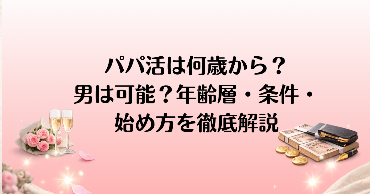 この記事では、男性は何歳からパパ活ができるのかという基本から、実際の年齢層や求められる条件、年代ごとの特徴、注意点までをわかりやすく整理しています。これから始めようか迷っている方は、自分に当てはめながら参考にしてみてください。