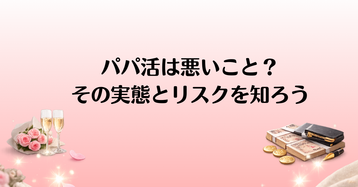 この記事では、パパ活が抱えるリスクを明確にし、その実態を詳しく解説します。また、パパ活を続けることがもたらす悪影響を理解したうえで、どうしたら健全な人間関係を築けるかを考えていきます。今後パパ活をするかどうかの判断材料として、ぜひ参考にしてください。