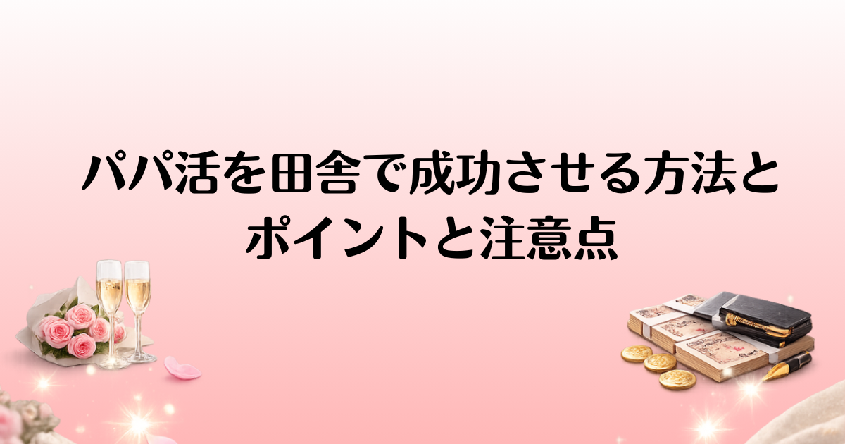「パパ活」と聞くと、都市部での活動が一般的に思い浮かびますが、実は田舎でもパパ活を成功させることが可能です。しかし、田舎でのパパ活は、都市部とは異なる特徴や注意点があるため、事前にしっかりと理解しておくことが大切です。この記事では、田舎でのパパ活を行う上で知っておくべきリスクや成功の秘訣、そして安全に活動を続けるためのポイントを詳しく解説します。地元の目を気にせず、効率的にパートナーシップを築く方法を学び、安心して活動をスタートさせましょう。