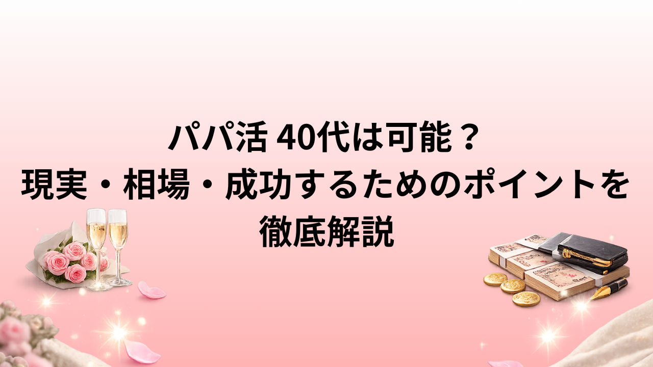 この記事では、パパ活 40代のリアルな現状から、相場、求められる理由、そして無理なく続けるためのポイントまで、できるだけわかりやすくまとめました。少しでも判断の参考になれば嬉しいです。