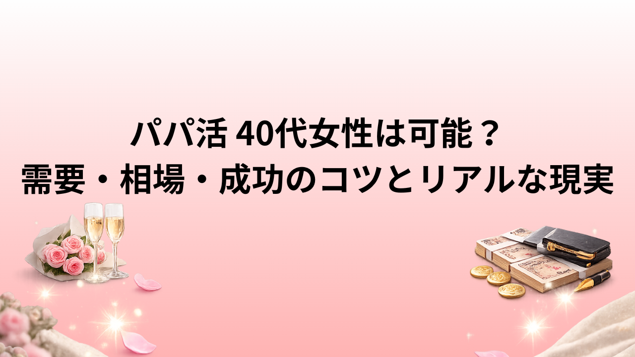 この記事では、パパ活 40代女性のリアルな現状から、需要や相場、求められる理由、そして無理なく続けるための考え方まで、わかりやすくまとめました。これから始めるか迷っている方にとって、判断のヒントになれば嬉しいです。