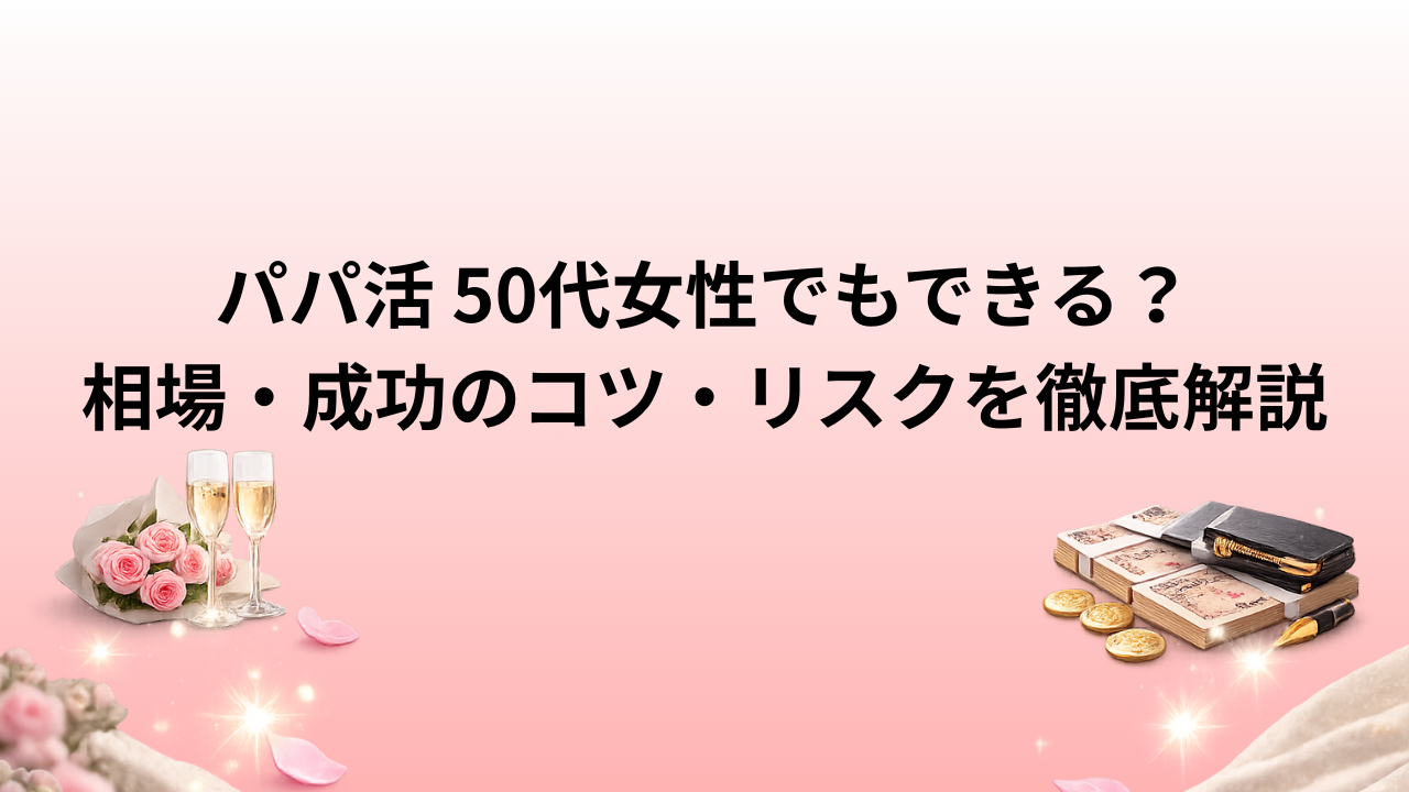 この記事では、50代女性がパパ活で成功するためのポイントや相場、リスク管理の方法について詳しく解説します。年齢にとらわれず、安心してパパ活を始めるためのヒントを知りたい方は必見です。無理なく、長期的に安定した支援を得るための秘訣を紹介しますので、ぜひ最後までお読みください。