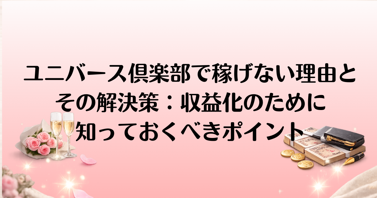 「ユニバース倶楽部で稼げない」と感じる方も多いかもしれません。登録はしたものの、思うように収益を上げられないと悩むユーザーが増えているのが現実です。その理由は、競争の激しさや収益化の仕組みに対する理解不足が主な原因として挙げられます。しかし、諦める必要はありません。この記事では、「なぜ稼げないのか?」その原因を解説し、収益化への具体的な改善策を提案します。正しい方法と戦略を身につけることで、あなたも収益を得るための第一歩を踏み出すことができます。さあ、次のステップに進んでみましょう!