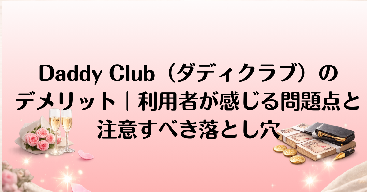 この記事では、**Daddy Club(ダディクラブ)**に登録する前に知っておくべきデメリットについて、実際の利用者の口コミや体験談を交えて解説します。また、デメリットを克服するための具体的な改善策も紹介し、より良いマッチングや収益化を目指すための実践的なアドバイスをお届けします。