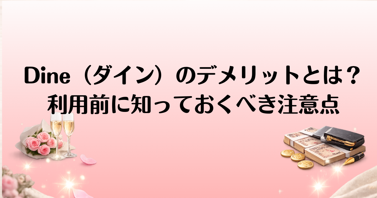 本記事では、Dine(ダイン)のデメリットについて、実際の利用者の口コミや体験談を元に、特に気になるポイントを掘り下げて解説します。また、デメリットを最小限に抑え、上手にサービスを活用するための改善策やアプローチ方法についても紹介します。Dine(ダイン)を最大限に活用したい方は、ぜひ参考にしてください。