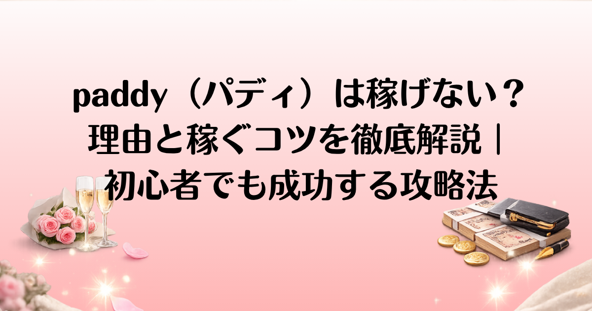 この記事では、paddyで稼げない原因を明確にし、その改善策や成功へのステップを紹介します。また、他のパパ活アプリとの比較を通じて、paddyの強みや弱みも分析します。さらに、成功した利用者の実例を紹介し、どのように彼らが稼げるようになったのかを探ります。これからpaddyを使って稼ぎたいと考えている方は、ぜひ参考にしてください。