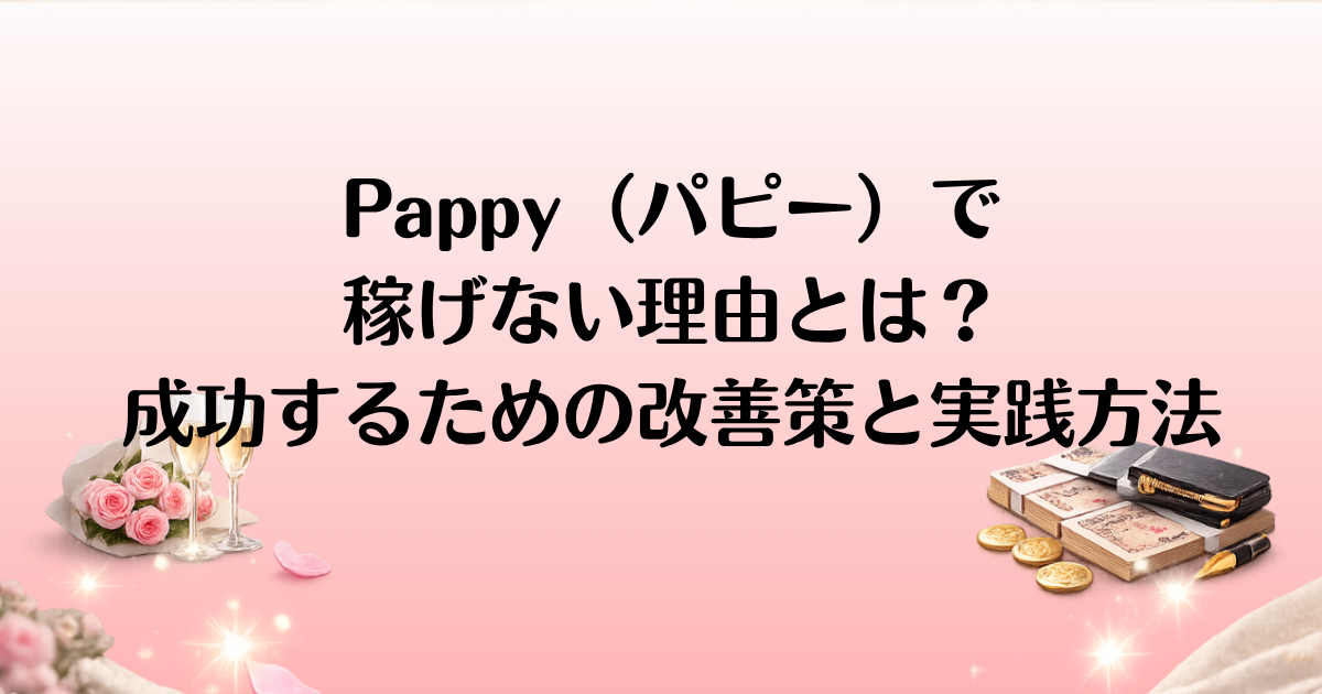 Pappy(パピー)で稼げないと感じることはありますか?多くのユーザーが「思ったほど反応がない」「うまくいかない」と感じているかもしれません。しかし、稼げない理由にはいくつかの要因があります。この記事では、Pappy(パピー)で稼げない主な理由とその改善方法を解説し、成功への道筋を具体的に提案します。競合サービスとの違いや、プロフィール作成、アプローチ方法の見直しを通じて、どうすれば稼げるようになるのかを見ていきましょう。
