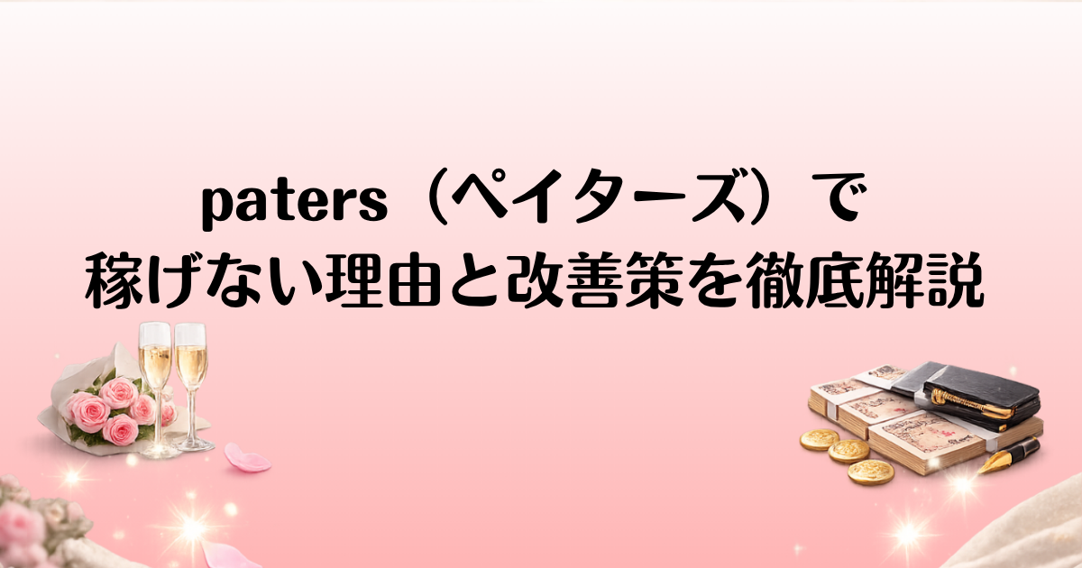 Paters(ペイターズ)で「稼げない」と感じる原因はさまざまです。特に会員数や地域差、プロフィール作成やアプローチ方法に関する問題が大きな要因とされています。また、競合アプリとの違いも影響していることが多く、稼ぐためにはこれらの要素をしっかりと理解し、改善することが重要です。本記事では、Paters(ペイターズ)で稼げない理由を解説し、稼げるようになるための改善方法を提案します。