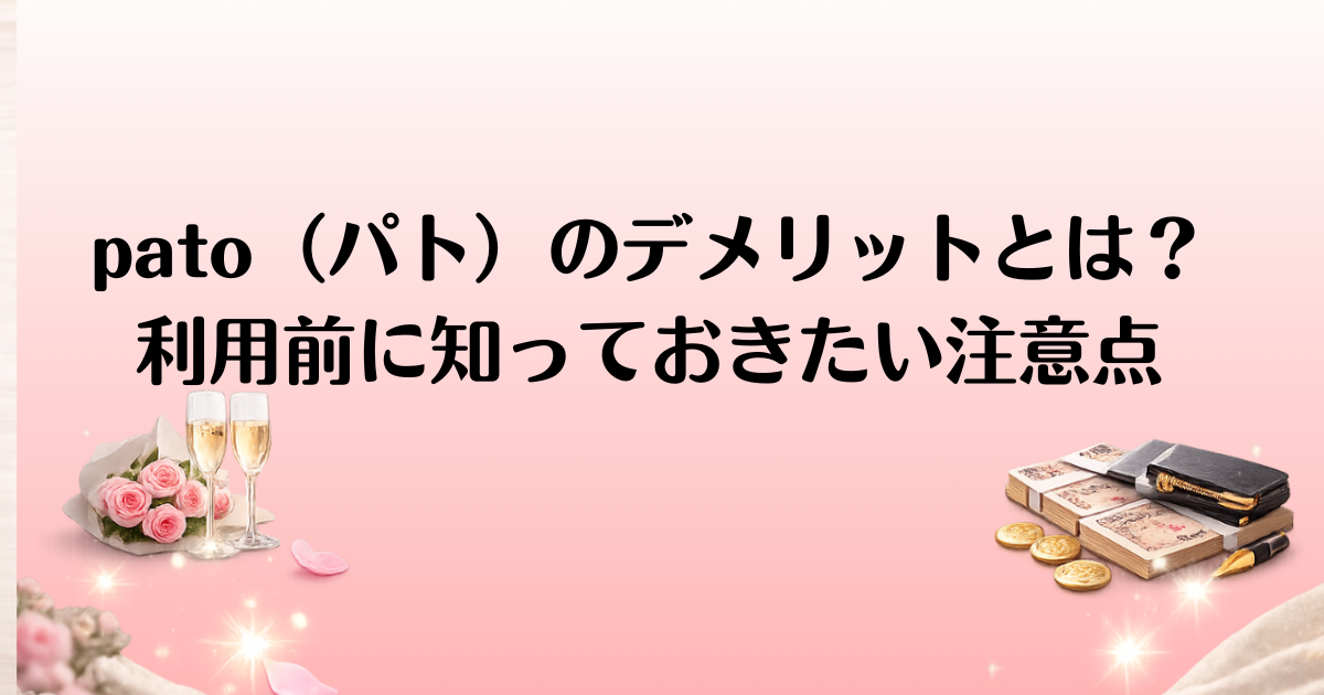 「pato(パト)」は、高級交際クラブや出会い系アプリの中でも注目されているサービスですが、利用前に知っておくべきデメリットもあります。多くの人が「使い方が分からない」「出会いの質に満足できなかった」といった意見を持っているのも事実。この記事では、「pato」のデメリットや注意すべき点を、実際の口コミや利用者の評価を元に詳しく解説します。これから利用を考えている方に向けて、最適な使い方のコツや、他のサービスとの違いについても触れていきますので、ぜひ参考にしてください。