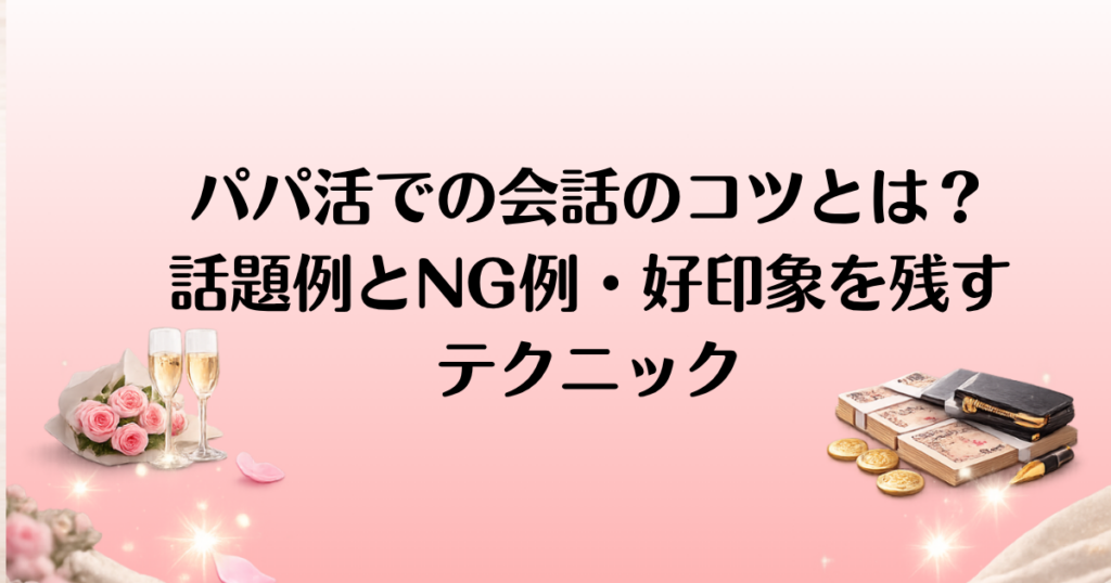 「パパ活で何を話せばいいのか分からない…」と悩んでいる方も多いのではないでしょうか。見た目や条件も大切ですが、実際には会話の印象がその後の関係に大きく影響すると言われています。 初対面でうまく話せなかったり、会話が続かず気まずくなってしま... -