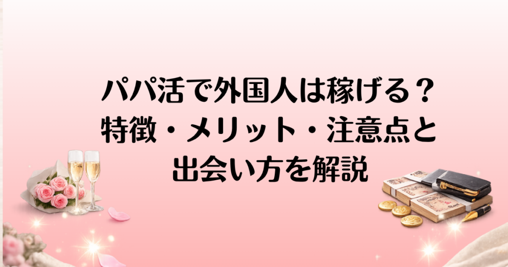 「外国人とのパパ活って実際どうなの?」と気になっている方も多いのではないでしょうか。日本人との違いや、稼ぎやすさについて気になる一方で、言語や文化の違いに不安を感じる方もいますよね。 実際には、外国人ならではの特徴や価値観があり、日本人と... -