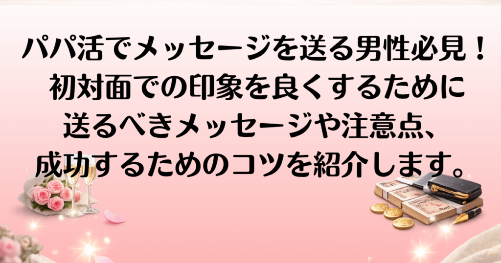 パパ活でメッセージを送る男性必見!初対面での印象を良くするために送るべきメッセージや注意点、成功するためのコツを紹介します。